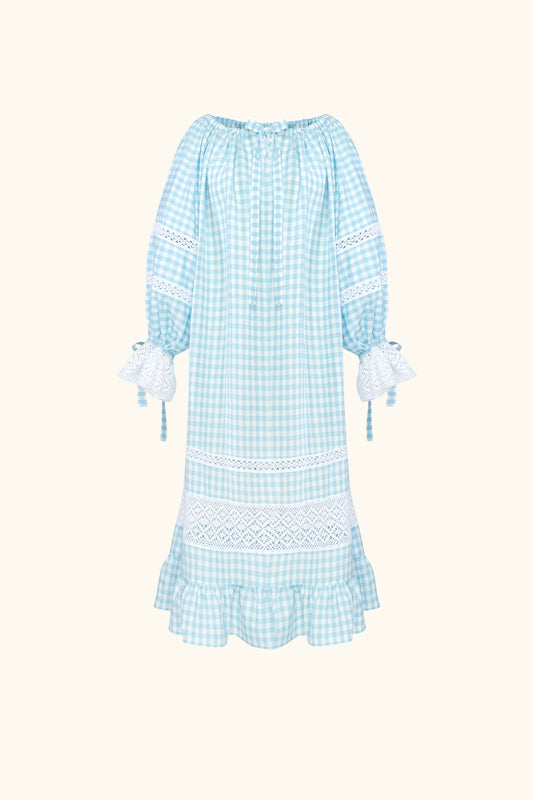 Romantica Lounge Dress in Blue VichyRegular price $288.00 USDRegular priceUnit price / perSale price $288.00 USD -