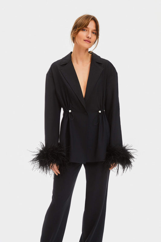 Girl With Pearl Button Blazer with Feathers in BlackRegular price $275.00 USDRegular priceUnit price / per$550.00 USDSale price $275.00 USD -