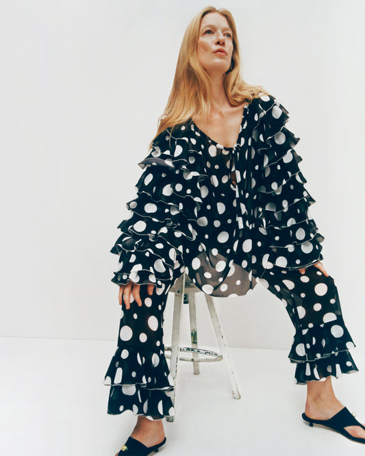 • Samba Ruffled Chiffon Polka-dot Shirt in Black