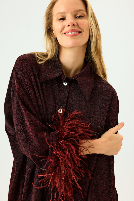 Cosmos Oversized Lurex Pajama Set in BurgundyRegular price $450.00 USDRegular priceUnit price / perSale price $450.00 USD -