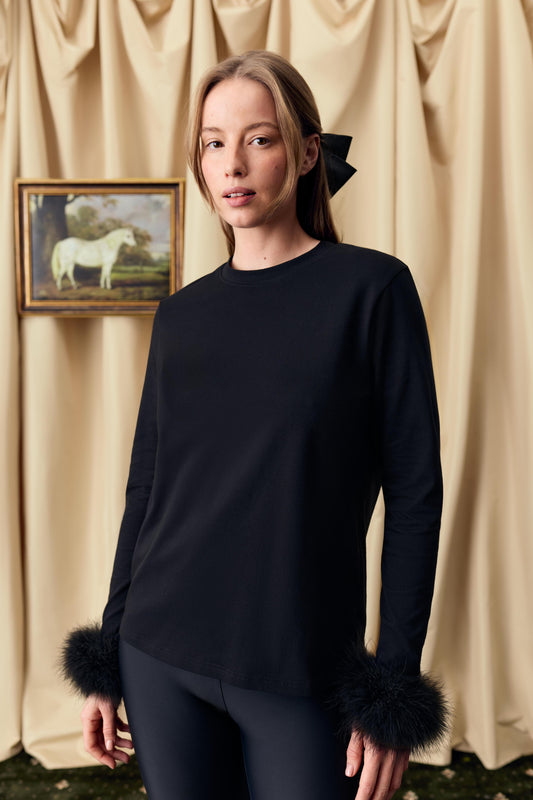 Long Sleeve Stretch-cotton Jersey T-Shirt with Detachable Feathers in BlackRegular price $190.00 USDRegular priceUnit price / perSale price $190.00 USD -