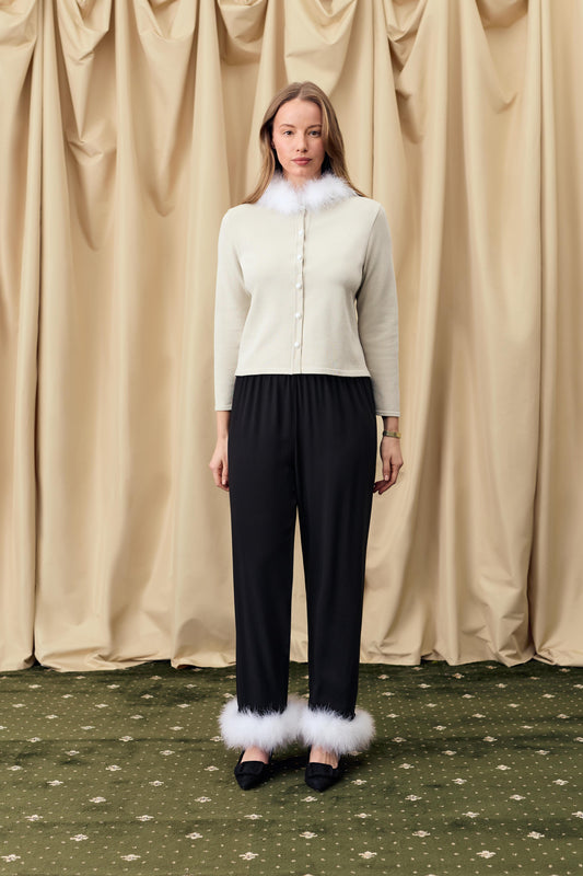 Miss Kitty Cardigan with Detachable Feathers in BeigeRegular price $350.00 USDRegular priceUnit price / perSale price $350.00 USD -