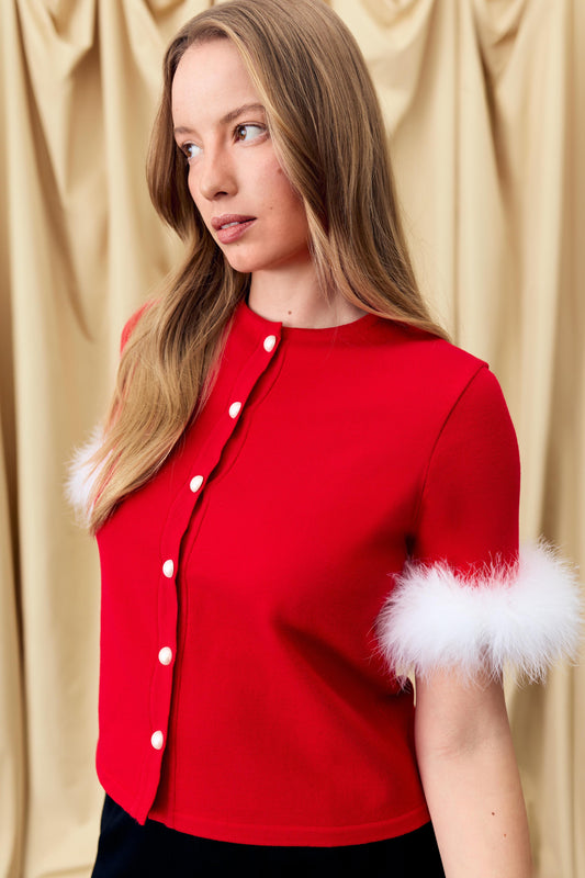 Miss Kitty Short Sleeve Cardigan with Detachable Feathers in RedRegular price $290.00 USDRegular priceUnit price / perSale price $290.00 USD -