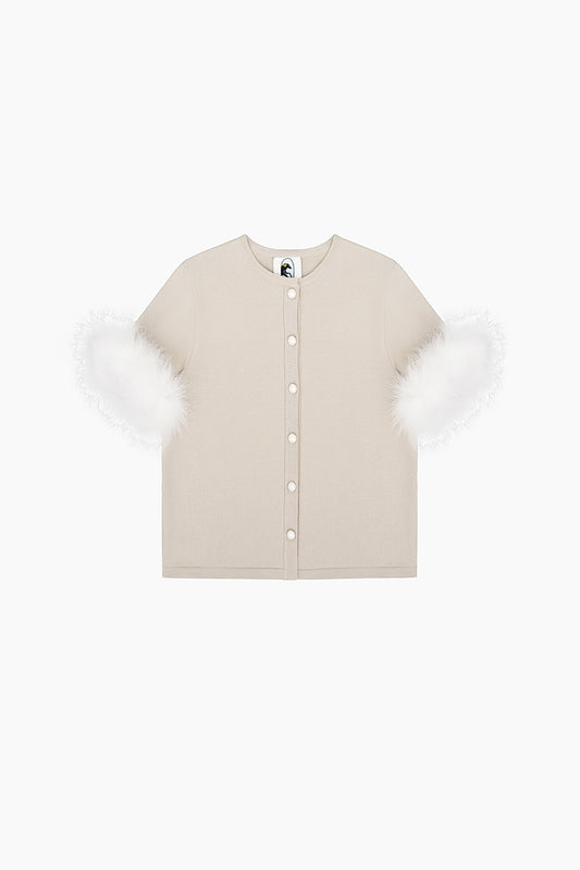 Miss Kitty Short Sleeve Cardigan with Detachable Feathers in BeigeRegular price $290.00 USDRegular priceUnit price / perSale price $290.00 USD -