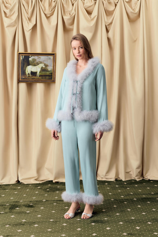The Bow Pajama Set with Detachable Feathers in GreenRegular price $390.00 USDRegular priceUnit price / perSale price $390.00 USD -