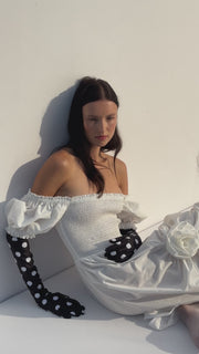 The Belle Dress is a beloved Sleeper silhouette, now reimagined with a romantic rose detail for a flirty touch. Made from structured yet breathable cotton in white color, it’s effortlessly versatile — perfect for both formal moments and leisurely days. The elastic shoulders can be worn up or down, letting you choose between a classic or off-the-shoulder neckline. Elegant, playful, and endlessly wearable.