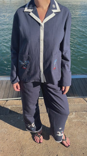Oversized shirt in an airy navy cotton linen blend. The hip-length design introduces an elevated take on a classic – with contrasting trims and embroidered motifs at the camp collar and patch pockets. Style with the Kotyk Embroidered Cotton-blend Pants for a truly unique ensemble, featuring artwork by pattern designer Yuliya Geras'ko.