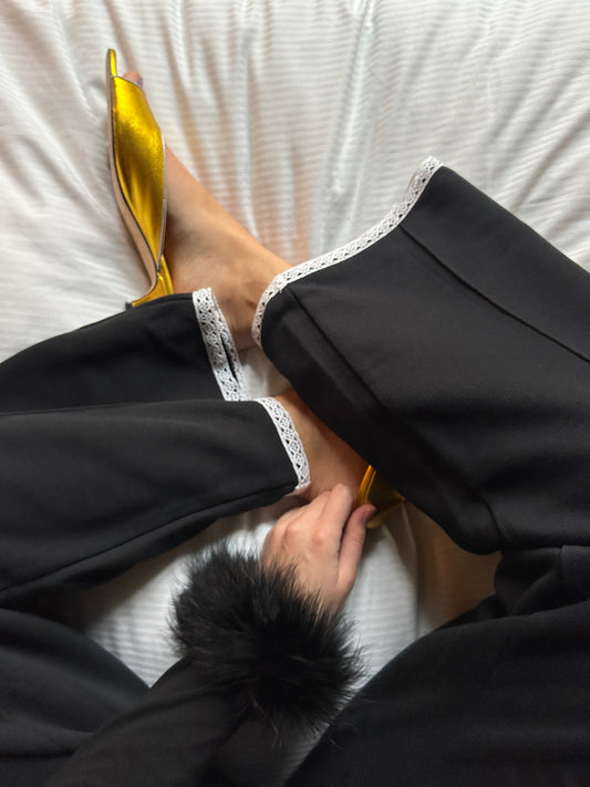 Boudoir Pants with Feathers in BlackRegular price $182.00 USDRegular priceUnit price / per$260.00 USDSale price $182.00 USD