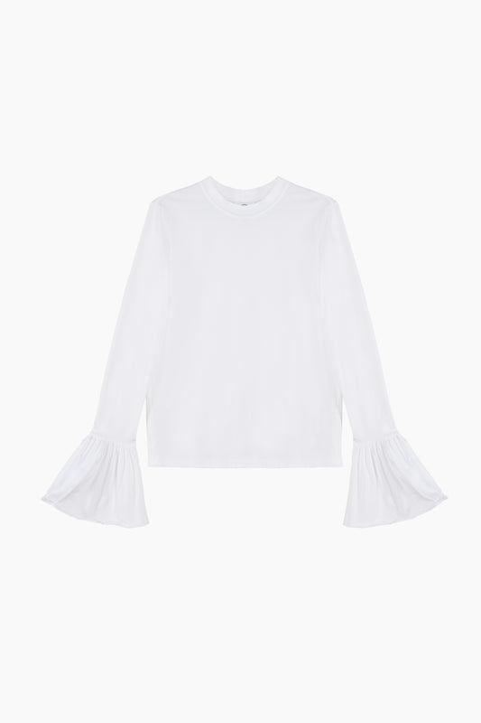Ruffled Long Sleeve Stretch-cotton Jersey T-Shirt in WhiteRegular price $109.00 USDRegular priceUnit price perSale price $109.00 USD -