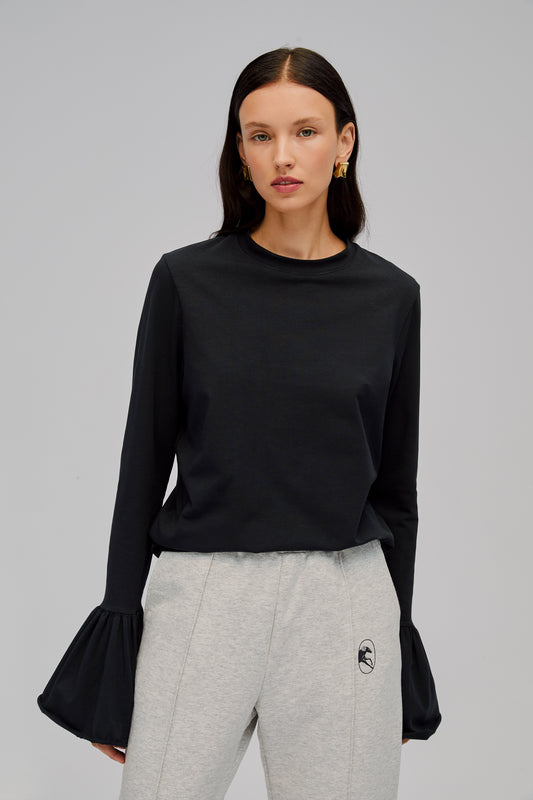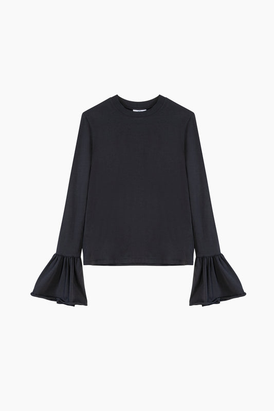 Ruffled Long Sleeve Stretch-cotton Jersey T-Shirt in BlackRegular price $119.00 USDRegular priceUnit price perSale price $119.00 USD -