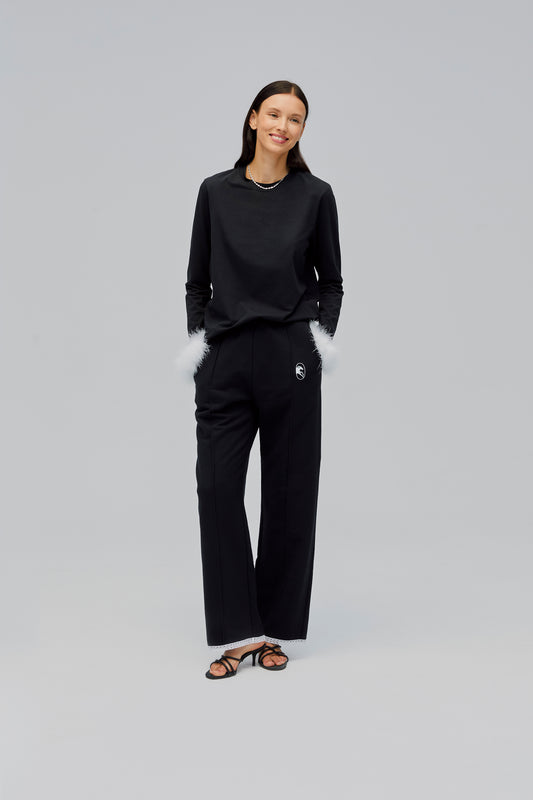 Relaxed Stretch-cotton Jersey Pants with Lace in BlackRegular price $138.00 USDRegular priceUnit price perSale price $138.00 USD